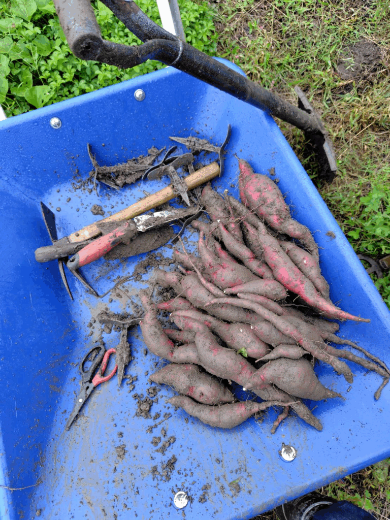 今日一日雨だったので、畑では足元がぬかるんでいて、雨にうたれながらの作業となったので泥々になりながらの活動でした。ですが、収穫したサツマイモは立派に成長していたので木野祭での豚汁や子ども写真教室での収穫の際も喜んでいただけると思いました。