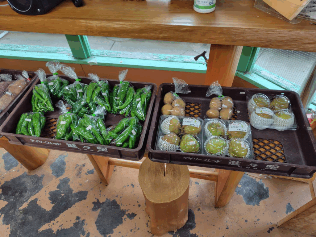 初めて朝市に参加しました。地域の方々が育てた、つやつやの野菜や果物、ちりめん山椒や昆布煮などが並んでいて、とても美味しそうでした。