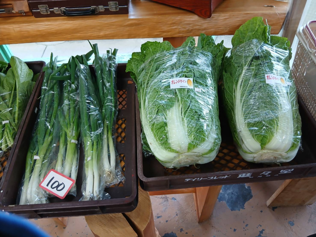 11月の朝市は、数々の冬野菜で彩られていました。